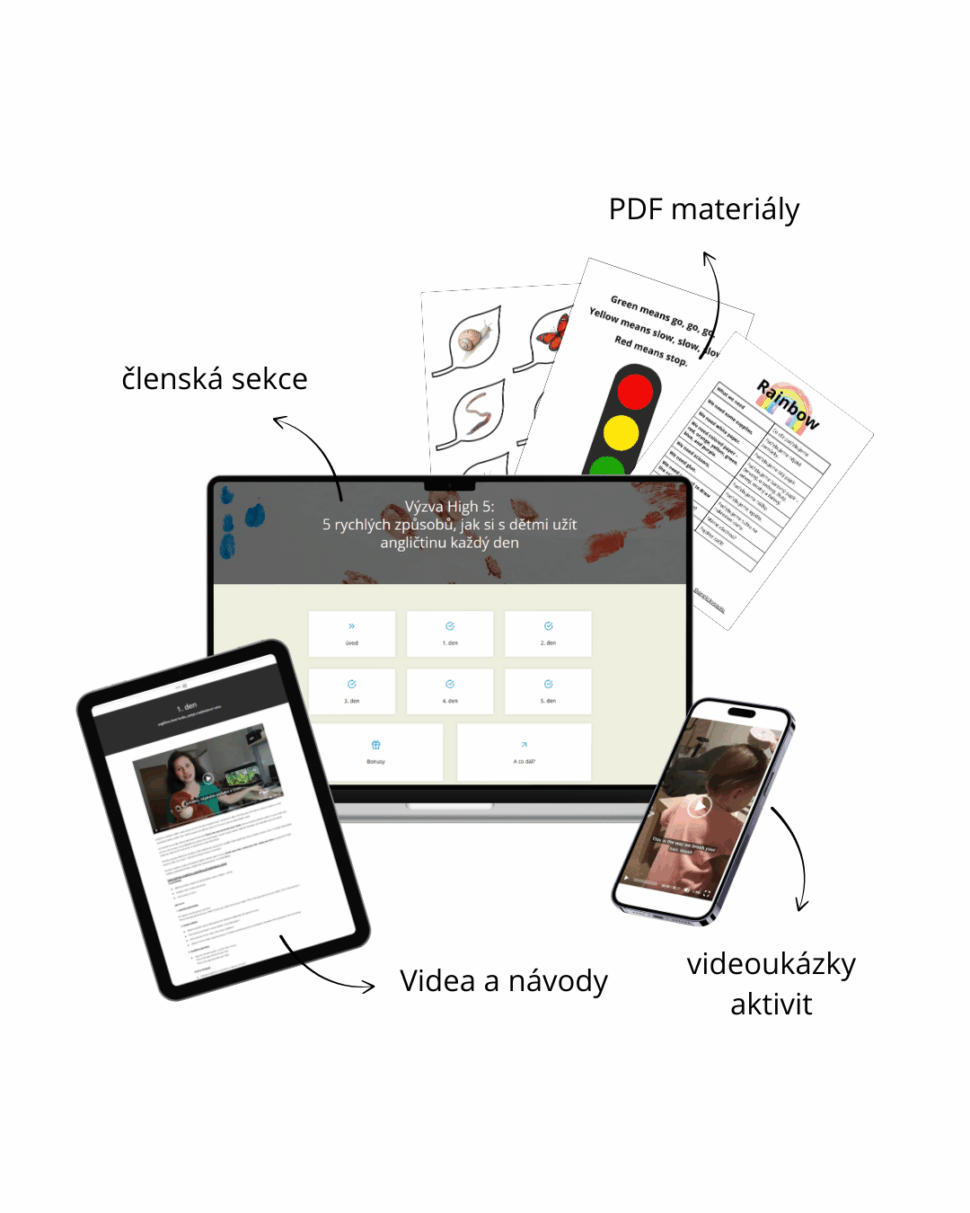 Začněte mluvit anglicky se svými dětmi hned teď. I když si myslíte, že nemáte slovní zásobu ani čas. Ve výzvě High 5 vám ukážu jednoduché hry, které děti nadchnou, a vy je zvládnete v pár minutách denně.